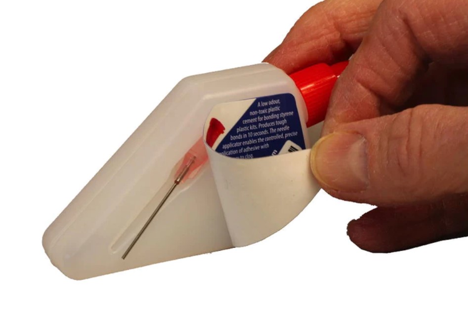 Hazard- free, non-toxic, plastic cement with a needle applicator. The glue is designed to be easy to apply, and with a 10 second working time for positional adjustment is ideal for all types of styrene plastic kits. Furthermore it is chemically engineered to resist needle clogging and not thicken in use.