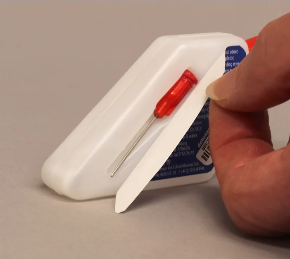 Precision Plastic Glue is packed in an easy to hold, clear plastic bottle for glue level visibility and an integrated detachable needle for safety.