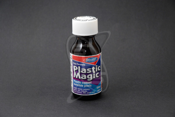 Deluxe Plastic Magic is designed for the assembly of ABS plastic card construction on scale and semi scale models; useful on exterior parts where invisible glue line is needed.