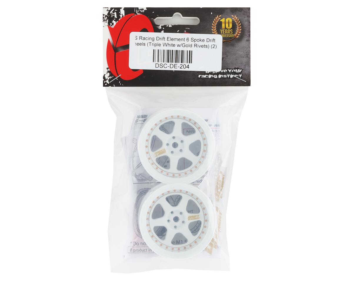 The DS Racing Drift Element 6 Spoke Drift Wheels are a great option to add that custom look to your RC drift car. These wheels feature an adjustable offset allowing you to have a factory, tucked or even stanced look. Each wheel is broken down into five pieces: Inner wheel, Outer wheel, Wheel Face, Inner rivet ring and Outer rivet ring. DS Racing has made these components available in multiple color and style options allowing you to select the wheels that will best match your build.