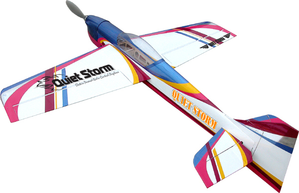 Built around precision flying and 3D, the Quiet Storm will deliver where other models fall short. Using inexpensive electric components, your Quiet Storm will be ready to fly in no time. Prepare to stun on lookers with it's unique semi-metallic covering and beautiful scheme. A unique curved fuselage bottom now offers better wind resistence. Flies flawlessly, looks fantastic, is of high quality and is easy to build... there's not much more you can ask for.