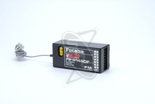 Futaba R148DF receiver features dual conversion signal filtering for interference-free reception and accurate control. R148DF is a micro FM receiver 8-channel receiver designed for all purposes. The horizontal pin alignment for this receiver is very helpful in tight space situations such as a glider.