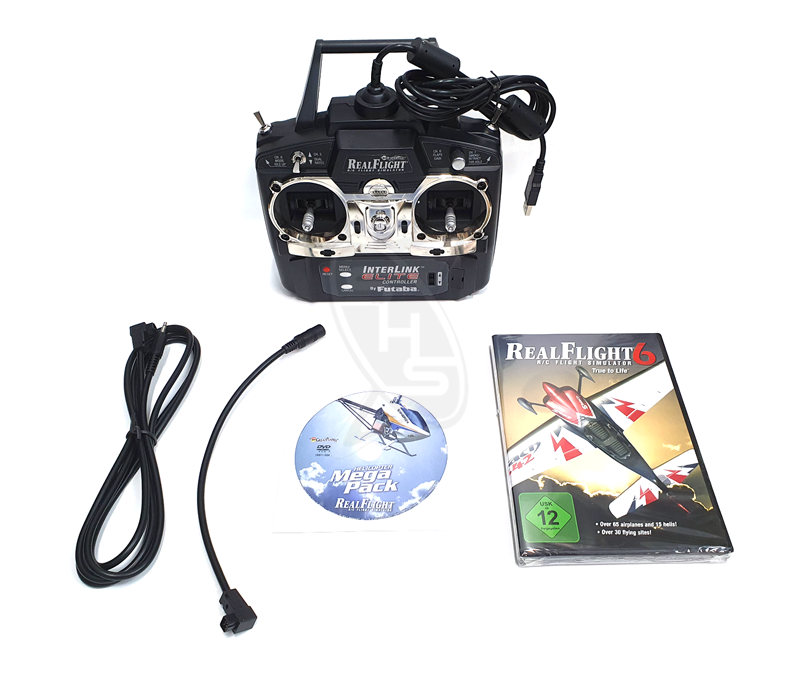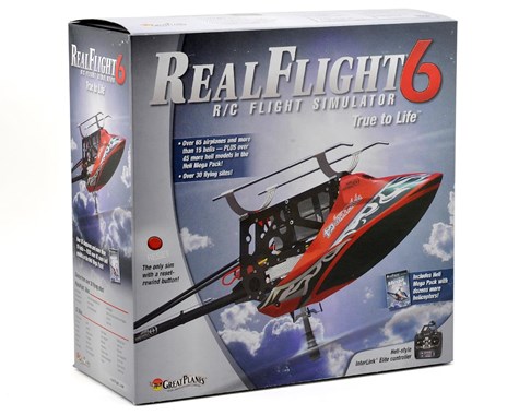 This is Great Planes RealFlight 6 Flight Simulator, with an included Mode 2 "InterLink Elite" Transmitter, and Helicopter Mega Pack. RealFlight 6 is here, and it’s loaded with even more realism and vastly improved heli physics. The feel and response is as real as it can possibly get. RealFlight 6 is also an incredible value. No other flight sim offers the variety of aircraft, and with RealFlight 6 you get a bonus Mega Pack, with either additional airplanes or helis. With so many aircraft and flying site choices, a controller designed for flying helis and more convenient features, RealFlight 6 is setting the bar even higher!