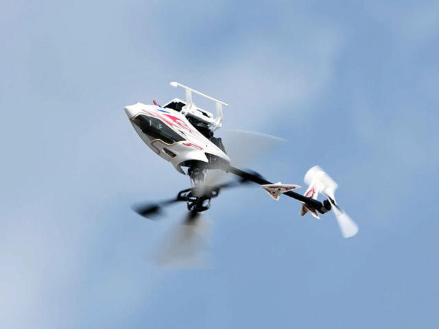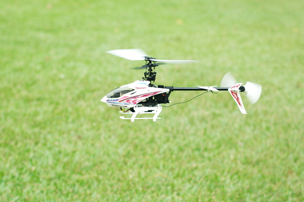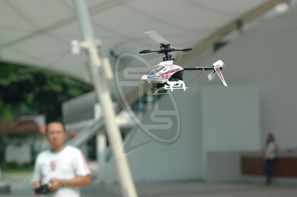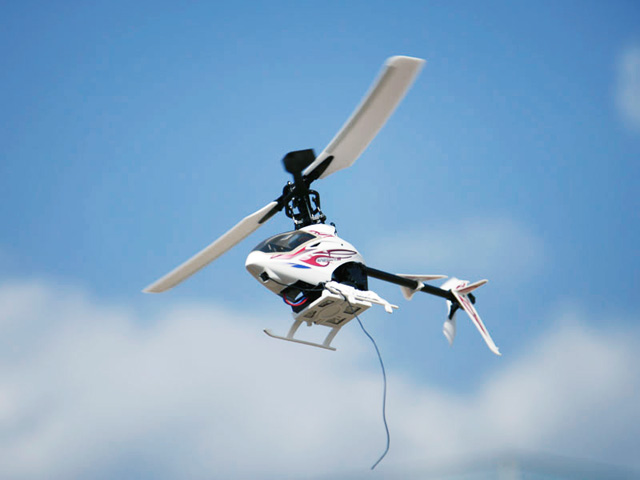 The stabilizer is tilted 45°against main rotor, resulting in very stable and easy control. (International patent pending)