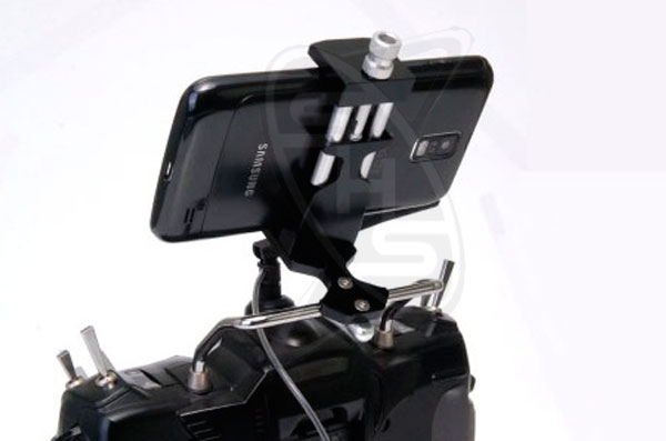With this Secraft Mobile Handphone holder for transmitter, you can now attached your mobile phone to your transmitter for FPV or just as a timer. This holder is suitable for handphone with width from 55mm to 85mm, and can also fit Apple Iphone 5/5S or Samsung Galaxy S4.