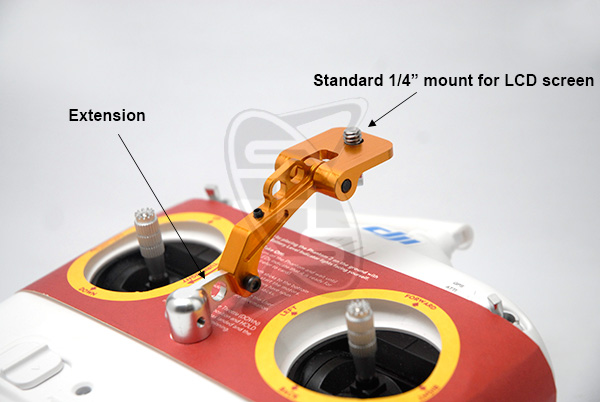 Seetec Screen Display Mount is a neat device that easily fits most 7 or 8 inch monitors with a standard 1/4"onto a tranmitter for FPV applications. This version includes an extension bracket for modelers who prefer the LCD monitor mounted forward with more room for the transmitter sticks. It is made of 6061T6 aluminum alloy material and precision CNC processed. The screen's angle can be easily adjusted and 2 neck strap loops are built-in.