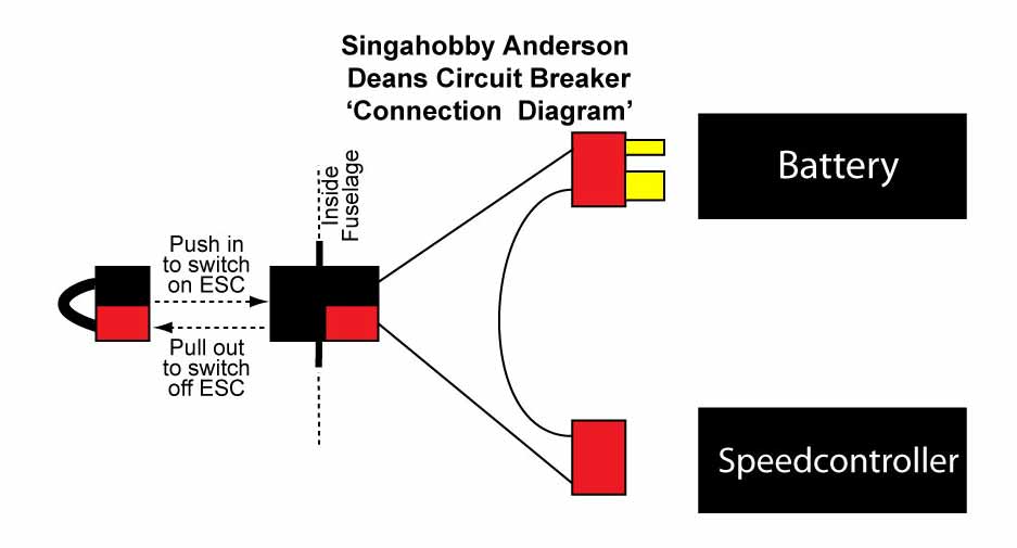 Singahobby Anderson Deans Circuit Breaker acts as a circuit breaker for your electric setup. The housing is installed into the fuselage of your model. Anderson and Deans are used so that the circuit can deliver up to 50A.