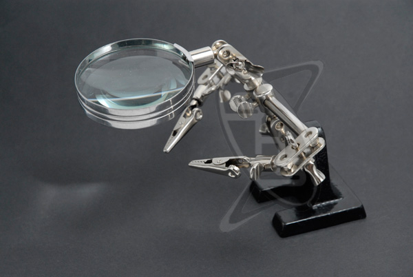The Singahobby Solder Stand with Magnifier & Clip Handles is a practical tool for electronics or electrical soldering work for your hobby. It features a 2.5 inch diameter 2.5X magnifier in a steel frame with heavy cast-iron base.