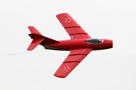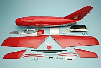 OK Model's scale model jet, EZ MiG-15 is powered by Tahmazo's new electric ducted fan DF-69. It's beautifully made fiberglass body is gel-coated with glossy red and silver finish. The balsa wings are covered with film and carbon fiber wing joiners are included for added strength.